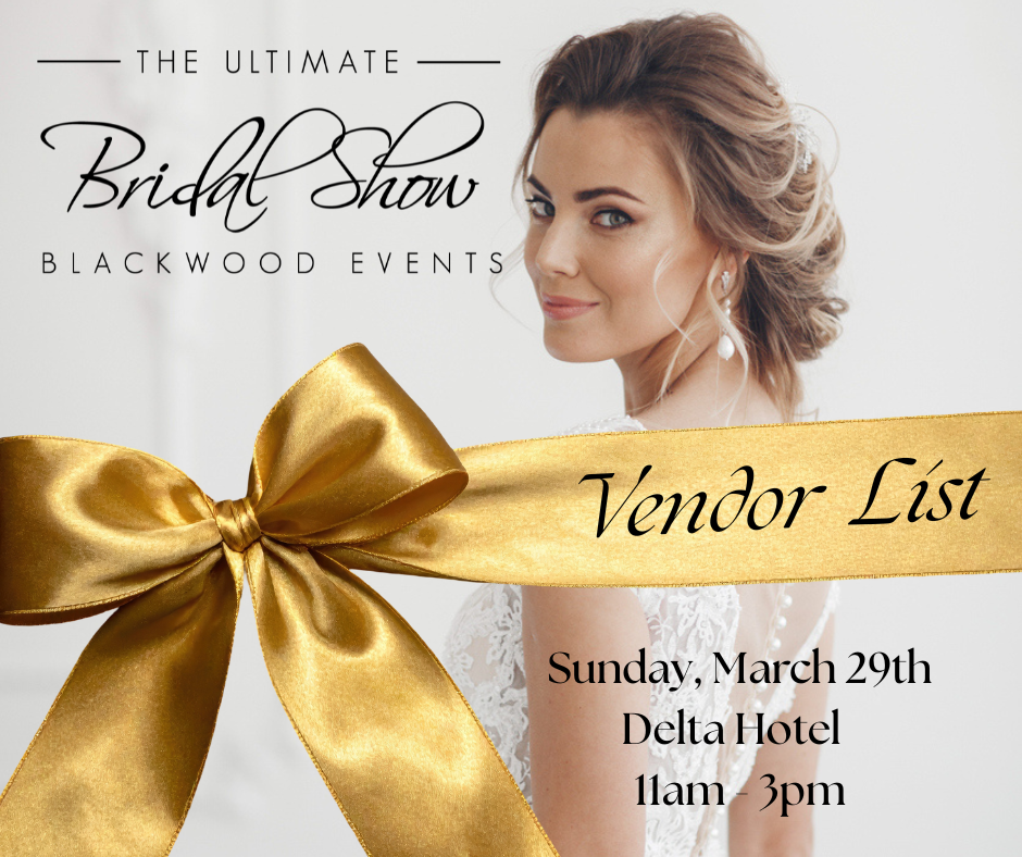 Check out the INCREDIBLE list of wedding vendors for you to chat with at the Ultimate Bridal show on March 29th! AND there’s more vendors to come…check back for updates!
